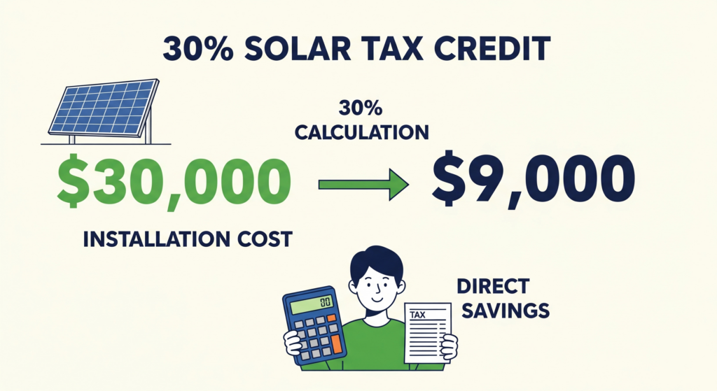 If your system reached that stage during the 2025 tax year, the credit applies when you file taxes in 2026. And the credit is still generous: 30% of your qualified installation cost.