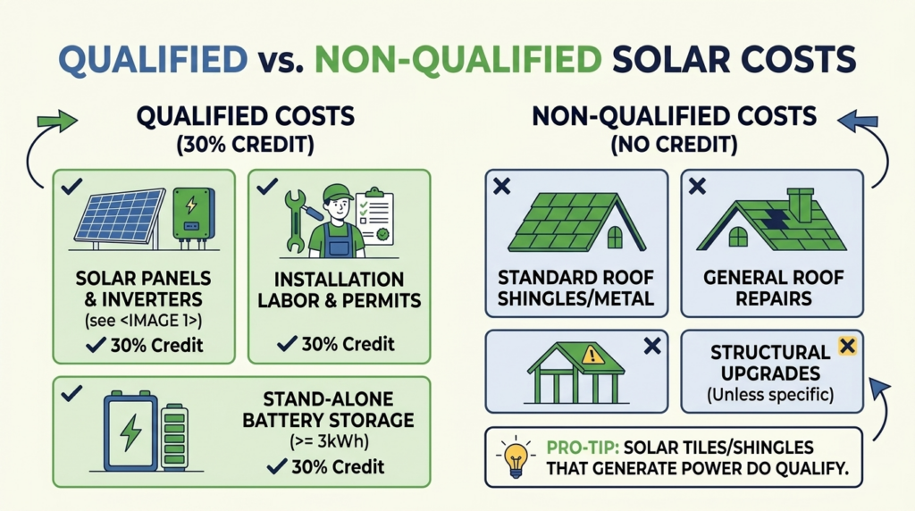 There’s one major exception: solar shingles or solar tiles that actually generate electricity. Products like these serve two functions at once—they replace the roof and produce power—so they can qualify.