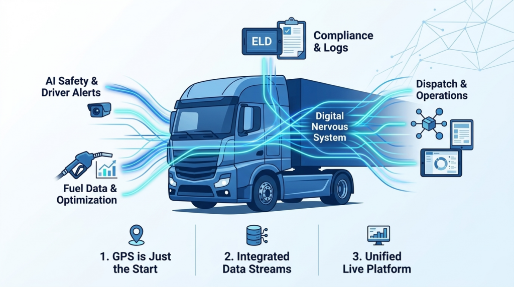 Today’s systems go far beyond that. They analyze driver behavior, predict maintenance issues, monitor fuel consumption, and help fleets prove compliance with federal regulations.