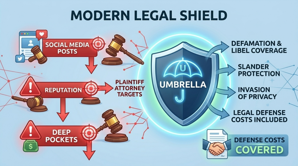 A well-structured umbrella policy typically expands protection to cover these modern risks—including the legal defense itself.